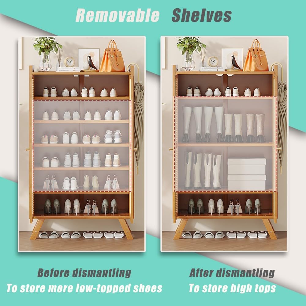 Endlich Ordnung im Eingangsbereich! Dieser stylische Schuhschrank von LARFOEK bringt nicht nur Stauraum für bis zu 10 Paar Schuhe, sondern sieht dabei auch noch mega aus. Die beiden Klappen sind aus echtem Kunstrattan - super robust und feuchtigkeitsresistent, genau wie bei hochwertigen Gartenmöbeln. Besonders praktisch: Die mittlere Trennwand ist einfach entfernbar, sodass auch hohe Stiefel oder Sneakers problemlos Platz finden. Oben gibt's eine extra Ablage mit Kantenschutz, wo du Schlüssel, Portemonnaie oder deine Handtasche ablegen kannst. Das Kiefernholz-Gestell ist richtig stabil und hält auch was aus. Und keine Sorge vorm Umkippen - mit dem mitgelieferten Wandanker machst du den Schrank bombenfest. Maße: 60,2 x 24 x 110,3 cm. Perfekt für schmale Flure oder den Hauseingang!