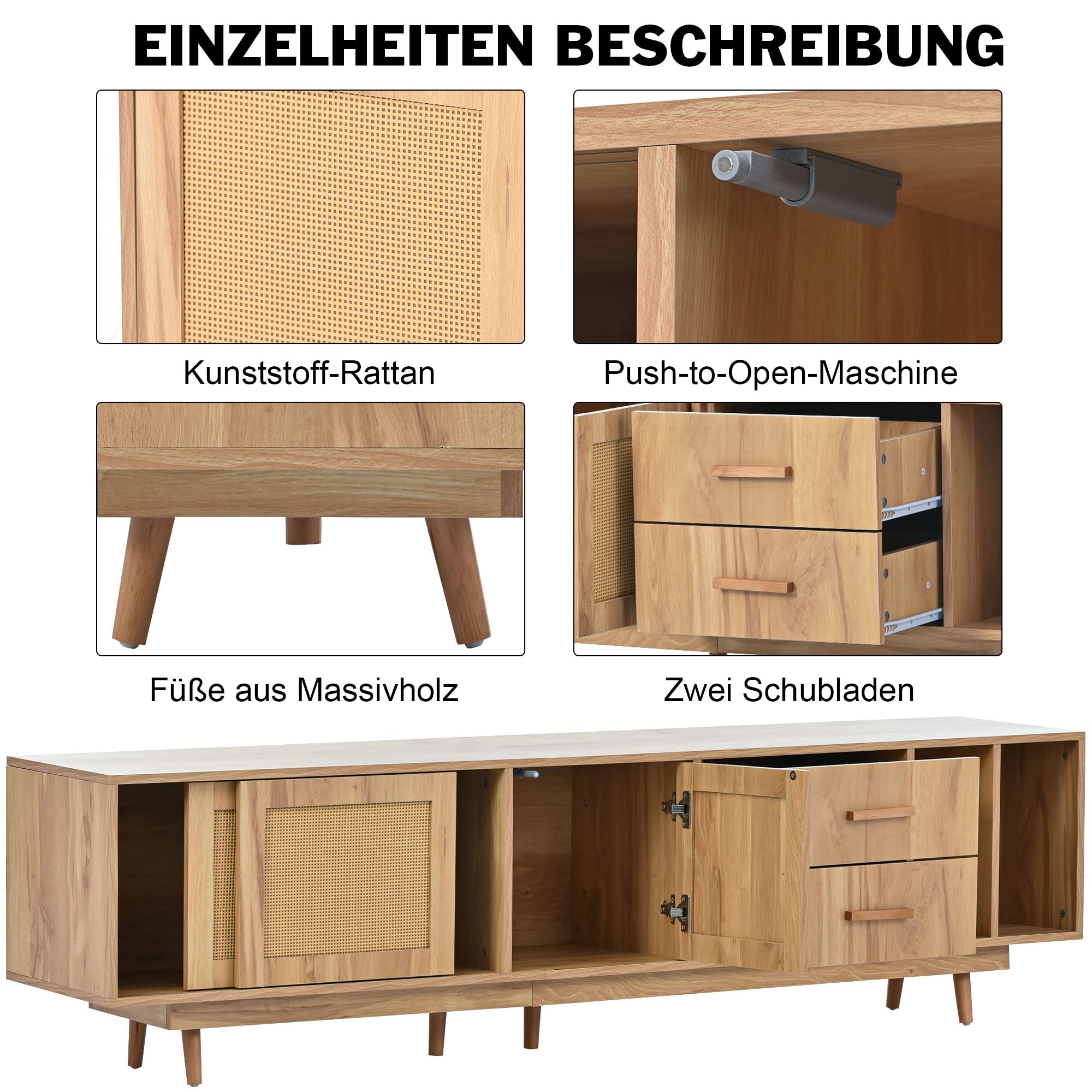 TV Lowboard Mit Rattan-Schubladen - 175cm Breite, Für Fernseher Bis 75 Zoll