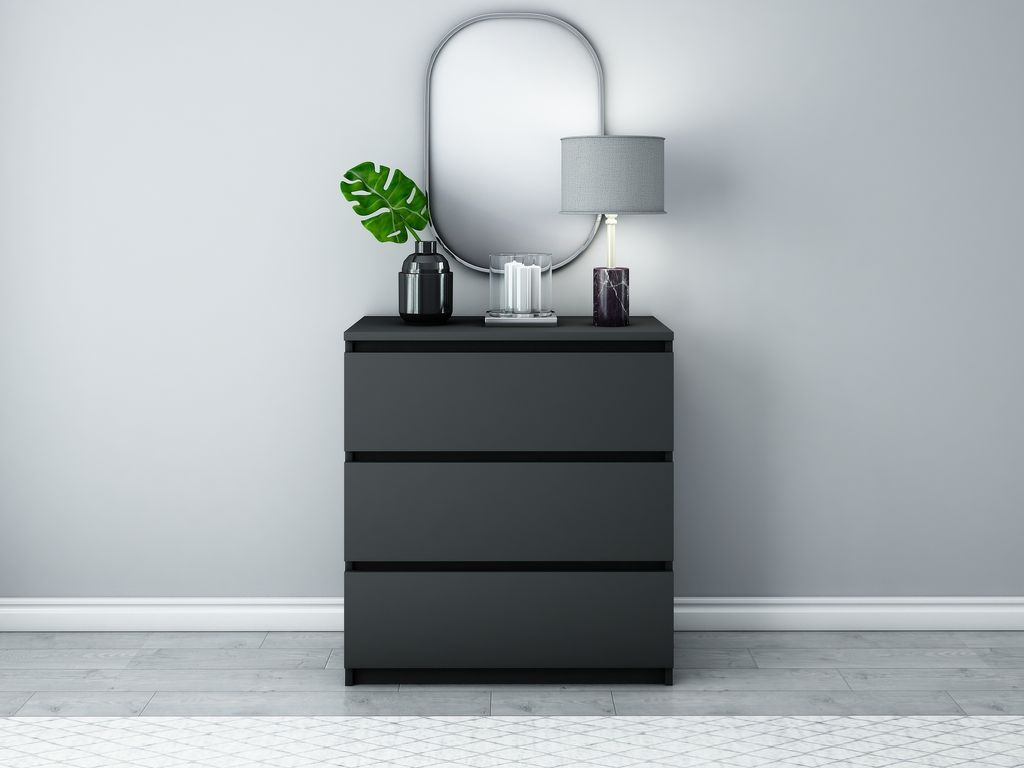 Stylische roe furniture Kommode mit 3 Schubladen - perfekt für moderne Wohnungen! Mit 60cm Breite, 35cm Tiefe und 76cm Höhe passt sie auch in kleinere Räume und Nischen. Griffloses Design in weiß glänzend sieht super edel aus und ist pflegeleicht. Aus laminierten Spanplatten der Emissionsklasse E1 - robust, kratzfest und feuchtigkeitsresistent. Die drei Schubladen bieten reichlich Stauraum für Kleidung, Dokumente oder Technik-Zubehör. Einfache Selbstmontage mit bebilderter Anleitung und komplettem Zubehör - auch für Heimwerker-Anfänger geeignet. Perfekt für Schlafzimmer, Wohnzimmer, Flur oder Arbeitszimmer. Schafft Ordnung und sieht dabei noch gut aus - was will man mehr?