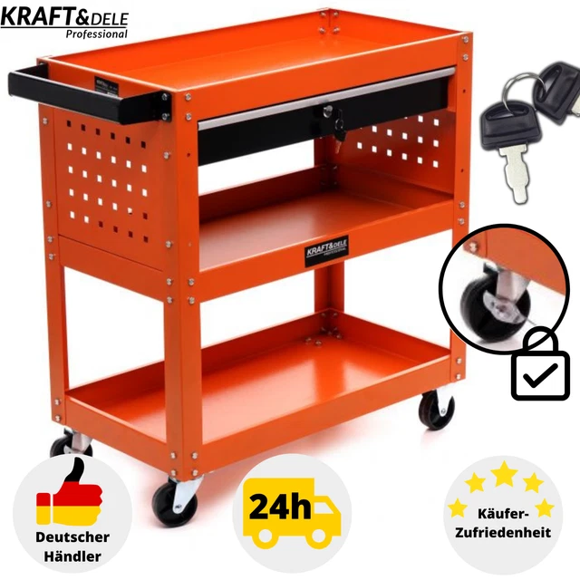 Ordnung im Chaos - mit diesem praktischen Werkstattwagen! Mit 5 geräumigen Schubladen plus seitlichem Zubehörfach ist für alles Werkzeug Platz. Das coole 3-in-1-System: Obereinsatz abnehmbar, riesiger Stauraum unten, und das Seitenfach für oft gebrauchtes Werkzeug. Mit 4 Rollen (2 mit Feststellbremse) fährst du ihn einfach dahin wo du ihn brauchst. Die Schubladen laufen super weich auf Teleskopschienen - kein Klemmen oder Haken! Rutschfeste Einlagen schützen dein teures Werkzeug vor Kratzern. Und das Zentralschloss sichert alle Schubladen auf einmal - praktisch! Maße: 72,5x28x104 cm, hält bis zu 200 kg aus! Ob in der Hobby-Werkstatt, Garage oder Profi-Werkstatt - dieser Wagen ist ein echter Alleskönner. Endlich alles griffbereit und ordentlich sortiert! Spart Zeit und Nerven beim Suchen. Einfach zusammenbauen und sofort loslegen - Werkzeuge sind natürlich nicht dabei, aber Platz genug für alles was du hast!