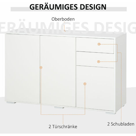 HOMCOM Kommode 4 Schubladen Weiß - 74x35x97cm Sideboard Für Wohnzimmer & Schlafzimmer
