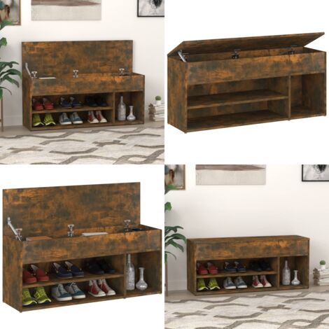 INLIFE Schuhbank Räuchereiche 102cm - Sitzbank Mit Stauraum Flur