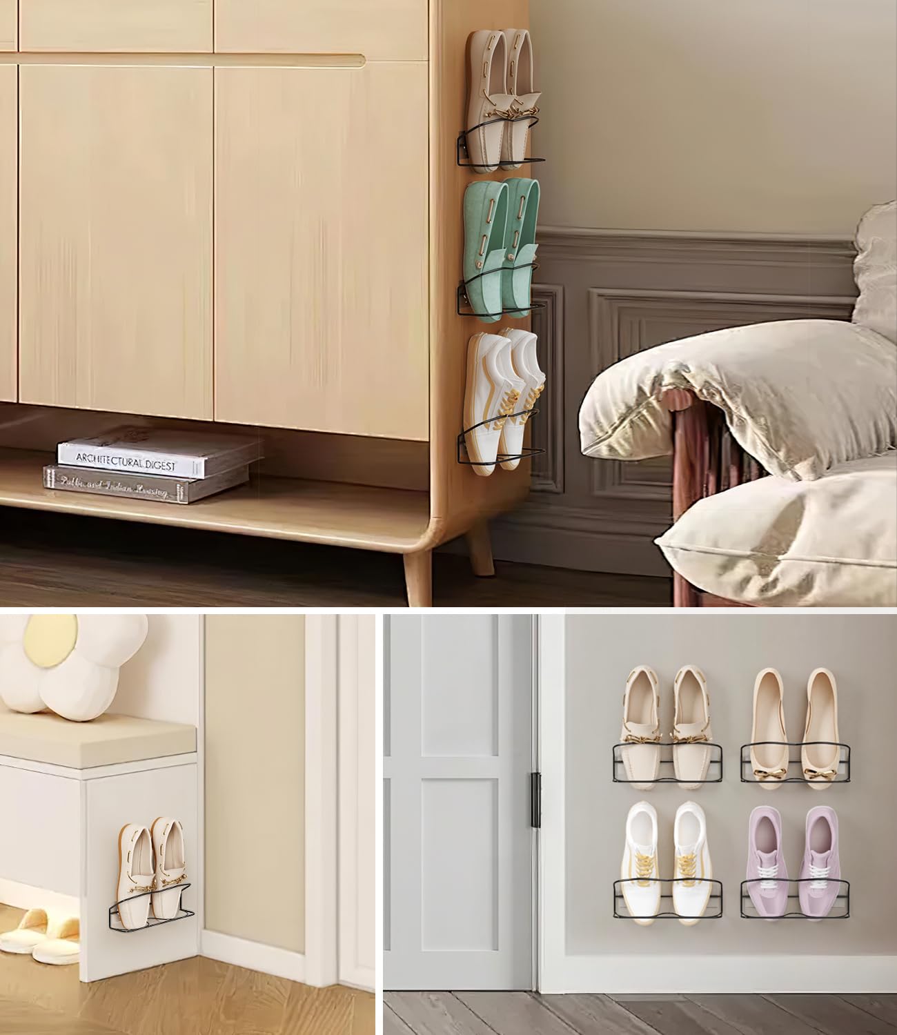 Boah, dieses Schuhregal ist ja die Rettung für kleine Flure! Aus robustem Metall und komplett verstellbar von 37 bis 67cm - passt sich jedem Raum an. Nur 11,5cm tief und 25,5cm hoch - super schmal und platzsparend. Für 2 Paar Schuhe - Sneaker, Sandalen oder Sportschuhe. Zwei Montagearten: Entweder mit Klebeband ohne Bohren oder mit Schrauben für extra Stabilität. Aus beschichtetem Kohlenstoffstahl - rostfrei und mega langlebig. Perfekt für Wohnmobile, Badezimmer oder schmale Flure - überall dort, wo Platz knapp ist. Gefaltet nur 2,1cm dick - kann hinter Türen verstaut werden. Endlich Ordnung im Schuhchaos! Deine Schuhe sind griffbereit und du behältst den Überblick. Einfach montieren und aufräumen - so einfach kann Ordnung sein! Dein Flur wird dir danken!