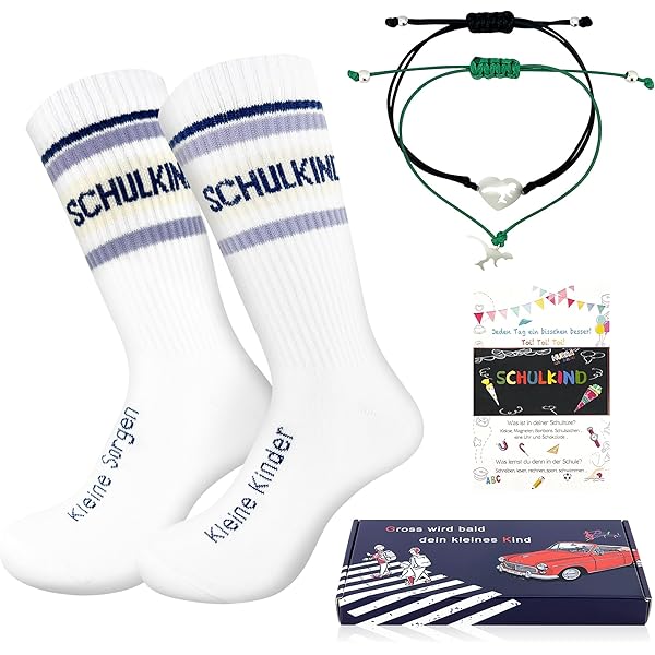 Das perfekte Geschenk zur Einschulung 2025! Diese lustigen Schulkind-Socken mit dem Aufdruck 'HURRA ICH BIN EIN SCHULKIND' auf der Sohne sorgen für strahlende Kinderaugen. Aus weicher Baumwolle (80% Baumwolle, 15% Nylon, 5% Elasthan) sind sie super bequem und dehnbar. Ideal für den Schulalltag oder Sportunterricht. Inklusive hübscher Geschenkbox und Einschulungskarte - direkt verpackt und bereit zum Verschenken! Perfekt für die Schultüte oder als kleines Extra zum Schulanfang. Mach den ersten Schultag zu einem unvergesslichen Erlebnis!