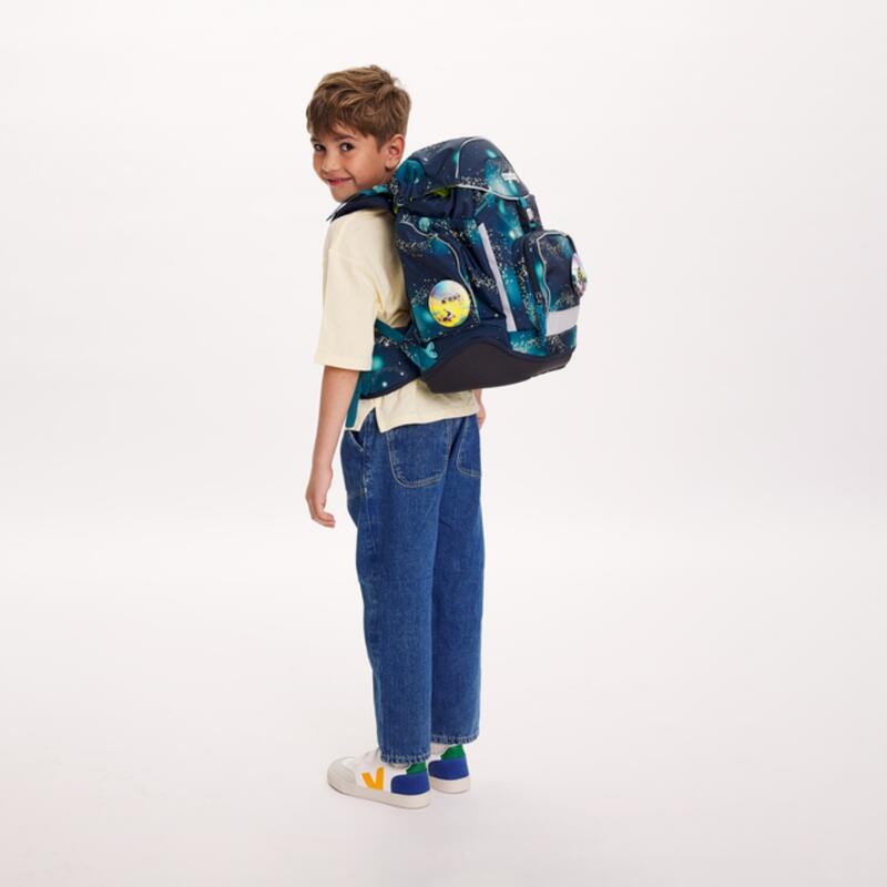 Hurra, der erste Schultag kommt! Mit diesem ergobag pack Set startet dein Kind perfekt in die Schulzeit. Der ergonomische Rucksack passt sich mit seinem höhenverstellbaren Tragesystem der Größe deines Kindes an - so wächst er praktisch mit. Gepolsterte Träger und ein Beckengurt verteilen das Gewicht optimal, damit der Rücken nicht belastet wird. Und im Dunkeln ist dein Kind sicher unterwegs, dank der vielen Reflektoren. Im 6-teiligen Set ist alles dabei: Der Hauptrucksack (28x40x25 cm), ein Sportbeutel, eine Heftebox, ein gefülltes Federmäppchen und ein Schlampermäppchen. Mit den Kletties kann dein Kind den Ranzen individuell gestalten. Aus wasserabweisendem Material und PFC-frei - also auch gut für die Umwelt. Fair produziert und extrem langlebig. Dein Kind wird den coolen Ranzen lieben - und du die praktische Aufteilung und die gesunde Passform!