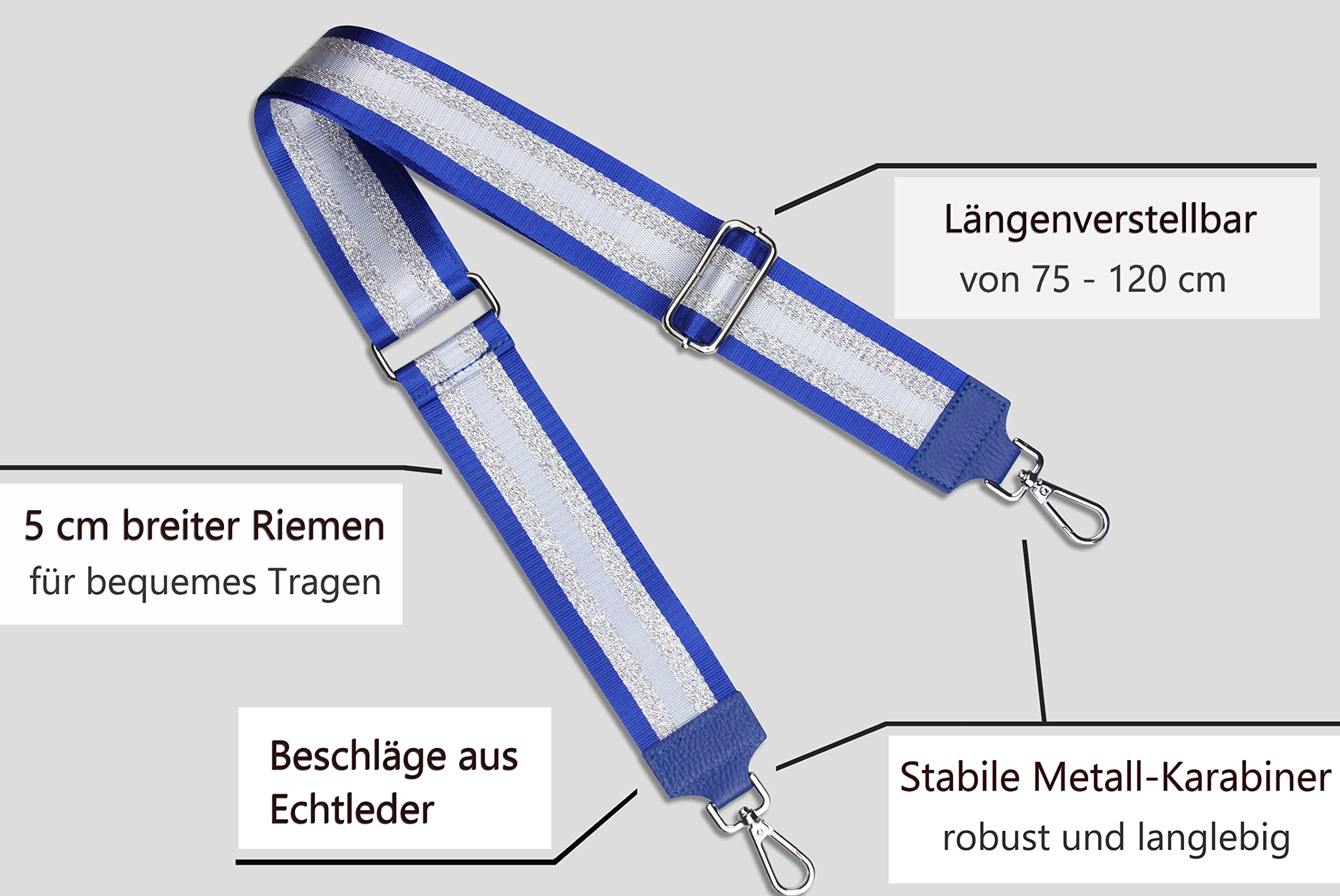 Verpasse deiner Tasche einen neuen Look! Dieser Schultergurt aus Italien ist mit 5cm Breite super bequem - schneidet nicht ein! Länge von 75-120cm verstellbar, passt also für jede Körpergröße. Die Metallkarabiner machen das Wechseln super einfach - in Sekunden ist die neue Optik da! Aus hochwertigem Material sorgfältig vernäht, mit echten Leder-Akzenten. Trag ihn als Schultergurt oder quer als Crossbody. So wird aus jeder Tasche ein neues Lieblingsstück!