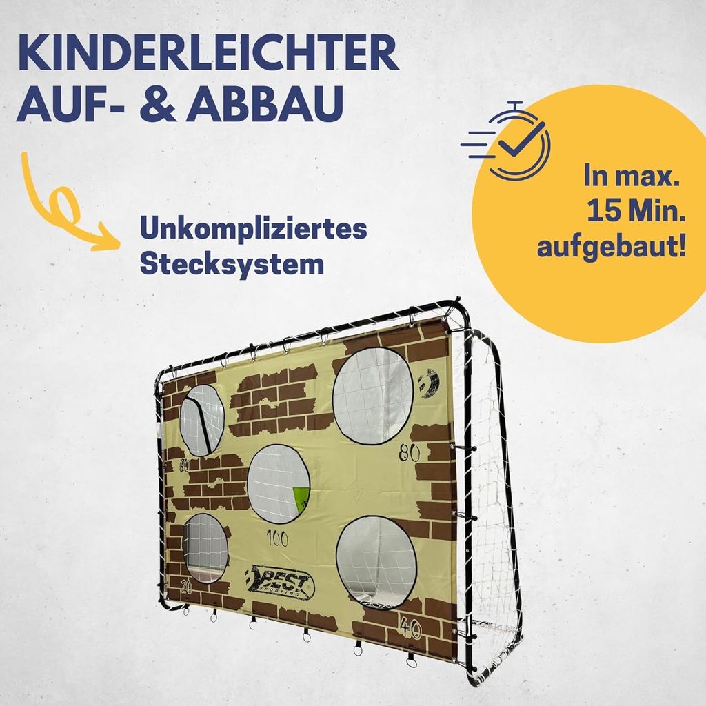 Hey Fußballfans! Diese coole Torwand von Best Sporting macht jedes Training zum Erlebnis. Mit 5 großen Schusslöchern (je 40 cm Durchmesser) und verschiedenen Länderflaggen-Motiven wird's nie langweilig. Perfekt für Tore mit 213x152 cm - einfach dranhängen und loslegen! Ob alleine oder mit Freunden, ihr könnt euch im Tore schießen duellieren. Das beste: Die Torwand ist absolut wetterfest und kann draußen bleiben - egal ob Regen oder Schnee. Aus stabilem Material gefertigt, hält sie auch intensivem Training stand. Unter jedem Loch steht die Punktzahl, damit ihr genau wisst, wer gewonnen hat. Seit über 40 Jahren entwickelt Best Sporting solche Sportprodukte - da steckt Erfahrung drin!