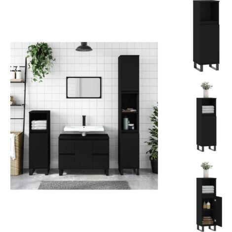 Puraday Hängeschrank Badezimmer Schwarz 100x36,5x35cm - Holzwerkstoff
