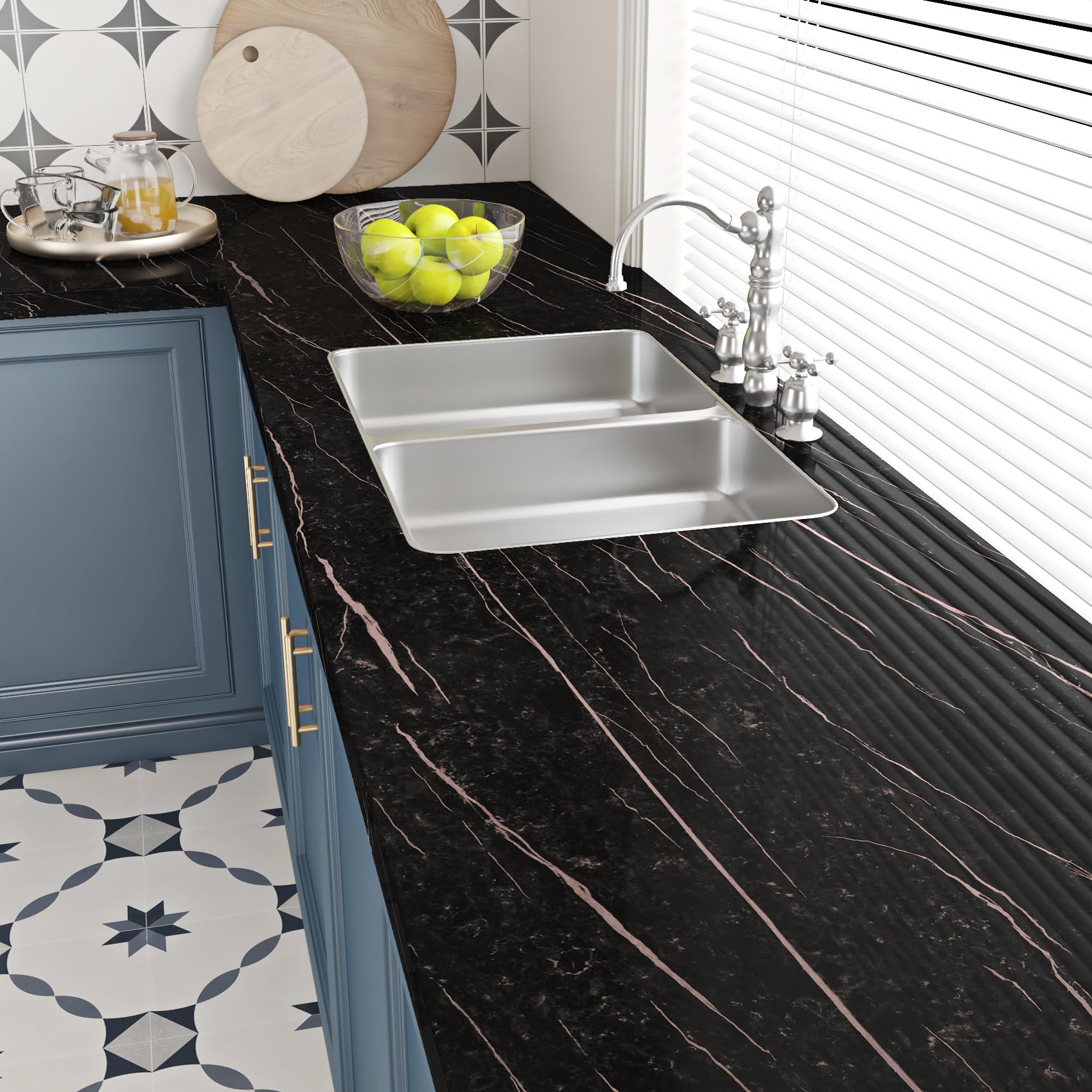 Verpasse deinen Möbeln einen neuen Look ohne teure Renovierung! Diese Marmor-Klebefolie in schwarz verwandelt alte Schränke, Tische oder Wände im Handumdrehen. Mit 40x500 cm (2m² Fläche) hast du genug Material für mehrere Projekte. Die 0,2 mm dicke Folie ist reißfest, wasserdicht und ölbeständig - perfekt für Küche oder Bad. Einfach die Schutzfolie abziehen und auf die gereinigte Oberfläche kleben. Die Gitterlinien auf der Rückseite helfen beim präzisen Zuschneiden. Luftblasen einfach mit einem Tuch ausstreichen. Hinterlässt beim Entfernen keine Klebereste! Perfekt für alle, die mal was Neues ausprobieren wollen ohne großes Geld auszugeben. Einfach kleben und sich über die neue Marmor-Optik freuen!