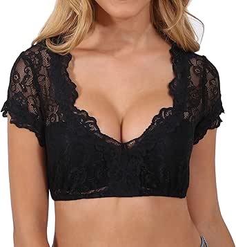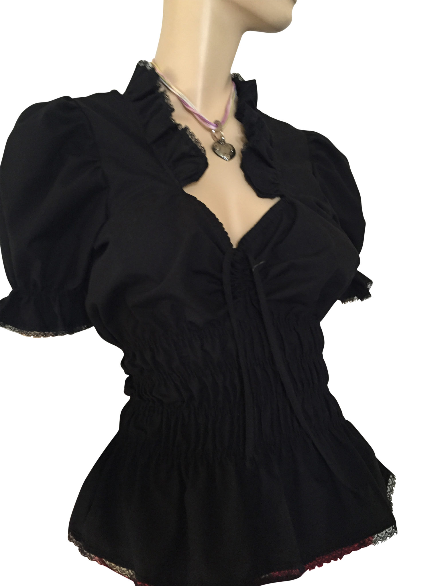R-dessous Corsagenbluse Schwarz - Dirndl Bluse Mit Netzstoff Ärmeln S-XXL
