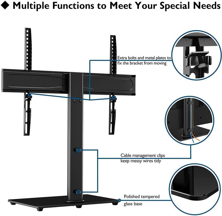 Universal TV Standfüße Schwarz - Für 32-65 Zoll Fernseher Bis 45kg Mit 25-55mm Lochabstand