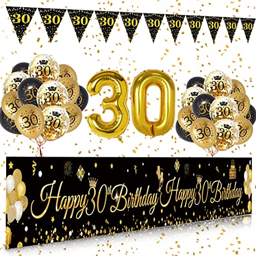 30. Geburtstag Banner Schwarz Gold - Stoff Türdekoration 165x80 Cm