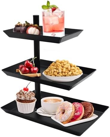 Wow-Faktor für deine nächste Party! Diese drehbare 3-etagige Obstschale aus Metall ist der Hingucker auf jedem Buffet. Super einfach zusammenzubauen - keine komplizierte Anleitung nötig. Mit 24,8x16x25,3cm genau die richtige Größe für Kuchen, Desserts, Gebäck oder Obst. Das schwarze Design ist zeitlos elegant und passt zu jedem Anlass. Einfach mit feuchtem Tuch reinigen - spülmaschinengeeignet. Ob Geburtstag, Hochzeit oder gemütlicher Abend - damit beeindruckst du garantiert alle Gäste!