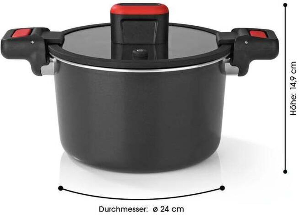 Hey Bäcker-Fans! Diese Megafesa Glas-Kuchenform ist ein echter Allrounder. 28cm Durchmesser - perfekt für Kuchen, Quiches oder Aufläufe. Aus emailliertem Stahl, bei 820°C glasiert - mega robust. Doppelt antihaftbeschichtet, PFOA-frei - nichts klebt an! Für alle Herde geeignet: Gas, Elektro, Ceran, Induktion - einfach universell. Die ergonomischen Bakelit-Griffe bleiben kühl und liegen gut in der Hand. Spülmaschinenfest - easy zu reinigen. Außen grau emailliert, innen schwarz - sieht einfach edel aus. Hohe energetische Leistung - backt gleichmäßig und spart Energie. Entspricht der Norm UNE-EN 12983-1 - also sicher und geprüft. Ob für Sonntagskuchen oder festliche Torten - mit dieser Form gelingt alles! Für Hobby-Bäcker und Profis gleichermaßen. Ein Küchen-Klassiker, der einfach immer geht!