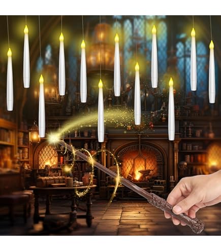 Zauberhafte Atmosphäre für jede Feier! Diese 12 schwebenden LED-Kerzen mit Zauberstab-Fernbedienung kreieren ein magisches Ambiente. Täuschend echtes Flackern ohne echte Flamme - absolut sicher für Kinder und Haustiere. Mit praktischem 6-Stunden-Timer: Einmal einschalten, nach 6 Stunden gehen sie automatisch aus. Einfache Montage mit transparenter Angelschnur und Haken. Perfekt für Halloween, Weihnachten, Hochzeiten oder romantische Dinner. Steuere alle Kerzen gleichzeitig mit dem Zauberstab - ein riesiger Spaß für Groß und Klein! Verwandele dein Zuhause in eine märchenhafte Wunderwelt!