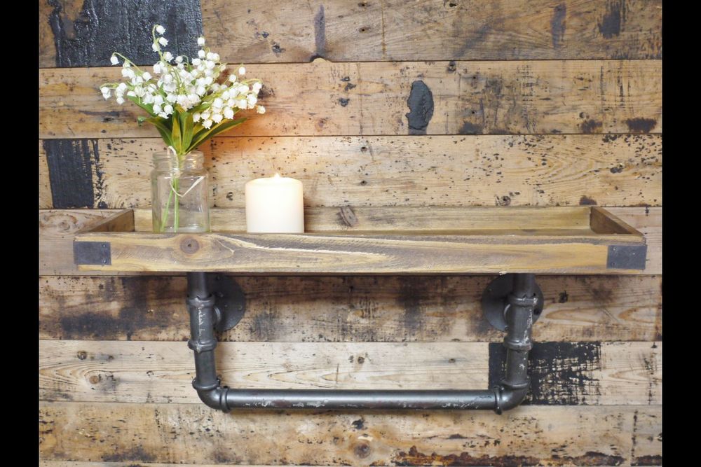 Vintage Fischgrätenholz Schweberegal - Küstendesign Aufbewahrungsregal Für Strand-Inneneinrichtung