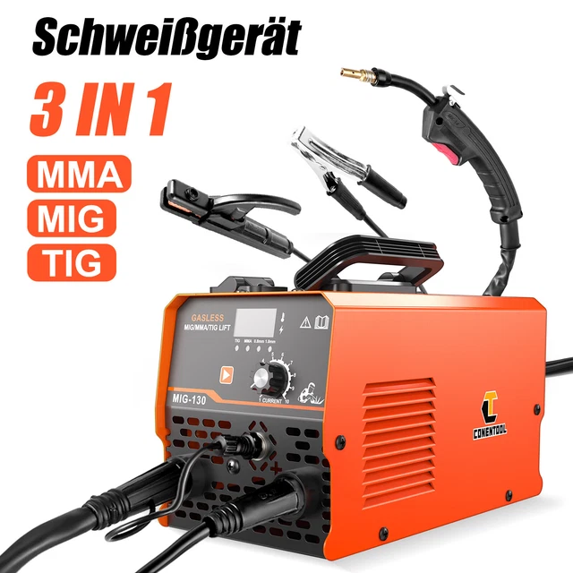 Alter, dieses Schweißgerät ist ja mal richtig vielseitig! Ob MIG/MAG, Lift-TIG oder Elektrode - mit diesem 3-in-1 Gerät machst du einfach alles. Perfekt für Einsteiger, aber auch Profis schätzen die vielen Features. Die digitale Anzeige zeigt dir immer genau an, was Sache ist - so musst du nicht ständig die Maske absetzen.\\n\\nTechnische Highlights:\\n• 140A Maximalleistung für Stärken bis 6mm\\n• IGBT-Technologie für konstante Leistung\\n• Synergic-Funktion für automatische Einstellungen\\n• IP21 Schutz gegen Staub und Spritzwasser\\n• Kompakt und trotzdem robust\\n\\nIm Lieferumfang ist wirklich alles dabei:\\n• MIG-Brenner und Erdungskabel\\n• Elektrodenhalter und Gesichtsschutz\\n• Bürste und Schweißdraht-Rolle\\n• Ausführliche Anleitung\\n\\nEgal ob du Auto-Teile reparieren, Geländer schweißen oder kreative Projekte umsetzen willst - dieses Gerät wächst mit deinen Fähigkeiten mit. Die automatische Spannungs- und Drahtvorschub-Anpassung macht's Einsteigern besonders leicht, während Profis die manuelle Einstellung zu schätzen wissen. Einfach anschließen und loslegen - mehr Komfort geht kaum!