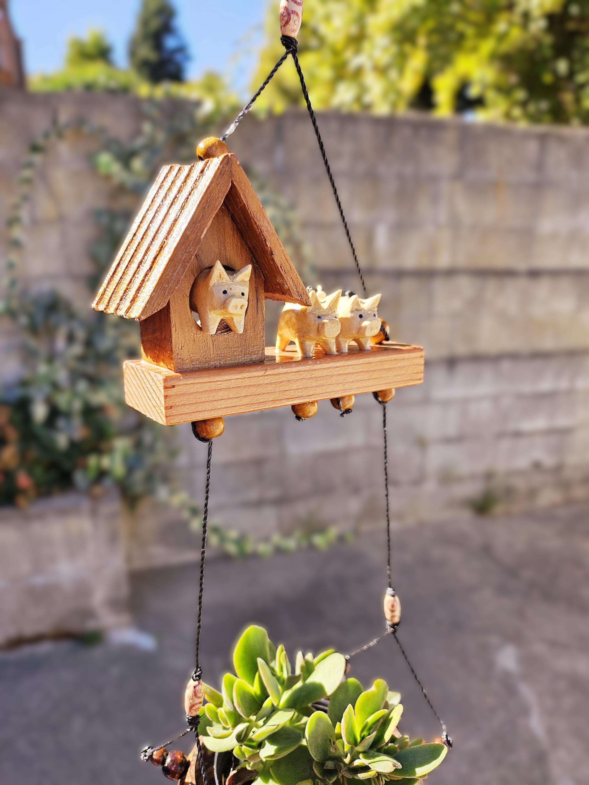 So niedlich! Dieses fliegende Schweinchen-Windspiel von IMAGO bringt Leben in deinen Garten oder Balkon. Aus natürlichen Materialien - Treibholz und Kieselsteinen - jedes Stück ein Unikat! Mit echten Federn als Propeller, die sich schon bei leichtem Wind drehen. Gesamtlänge 80-90cm, das Schweinchen selbst misst etwa 6x7cm. Einfach mit den beiliegenden Nieten zusammenbauen. Perfekt als Geschenk, für Partys oder einfach zur Verschönerung deines Zuhauses. Kombinierbar mit anderen maritimen Windspielen aus dem Shop - mach dir deine persönliche Wind-Galerie!