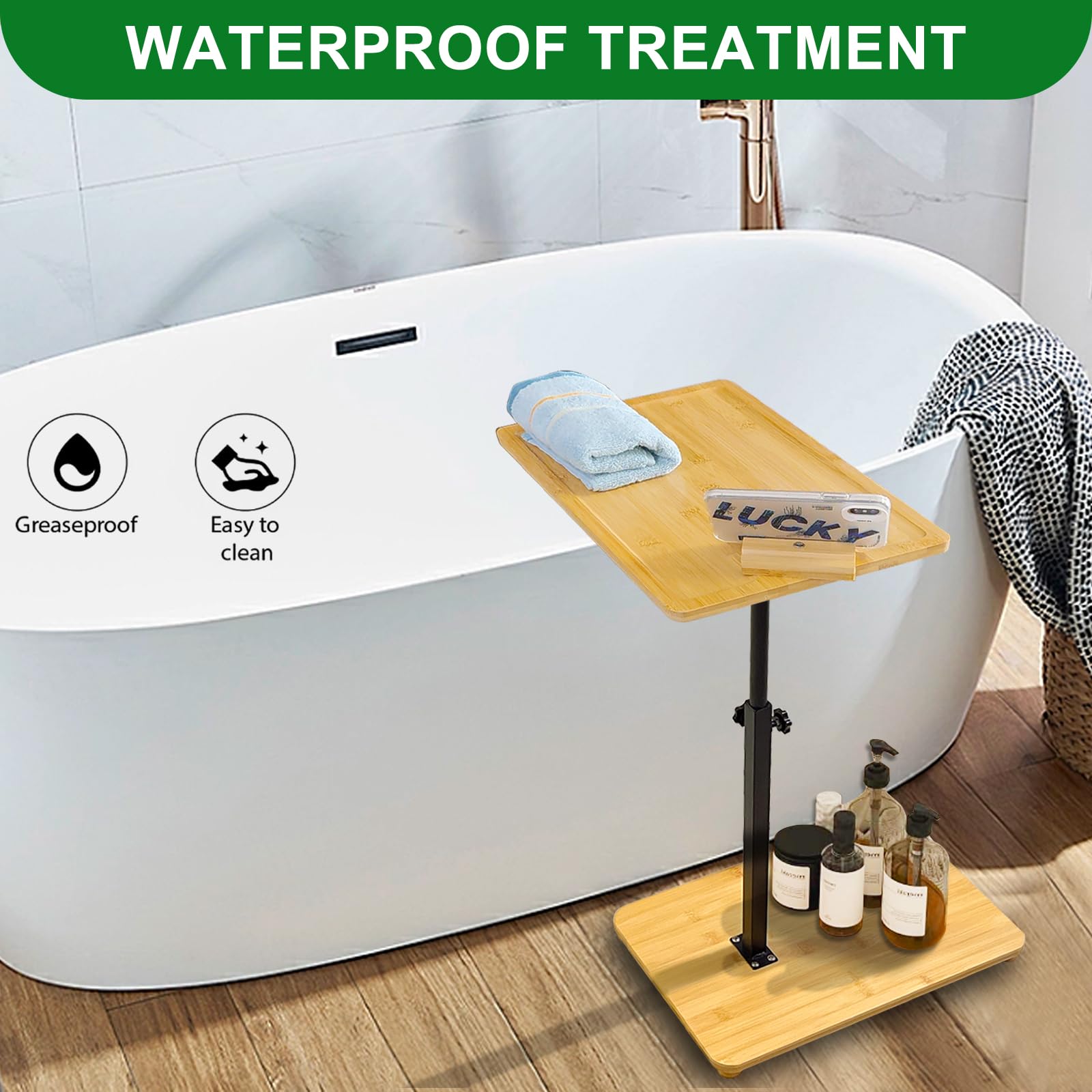 Bambus Sofa Tablett Höhenverstellbar - 360° Schwenkbarer C-Form Beistelltisch Für Bett & Couch