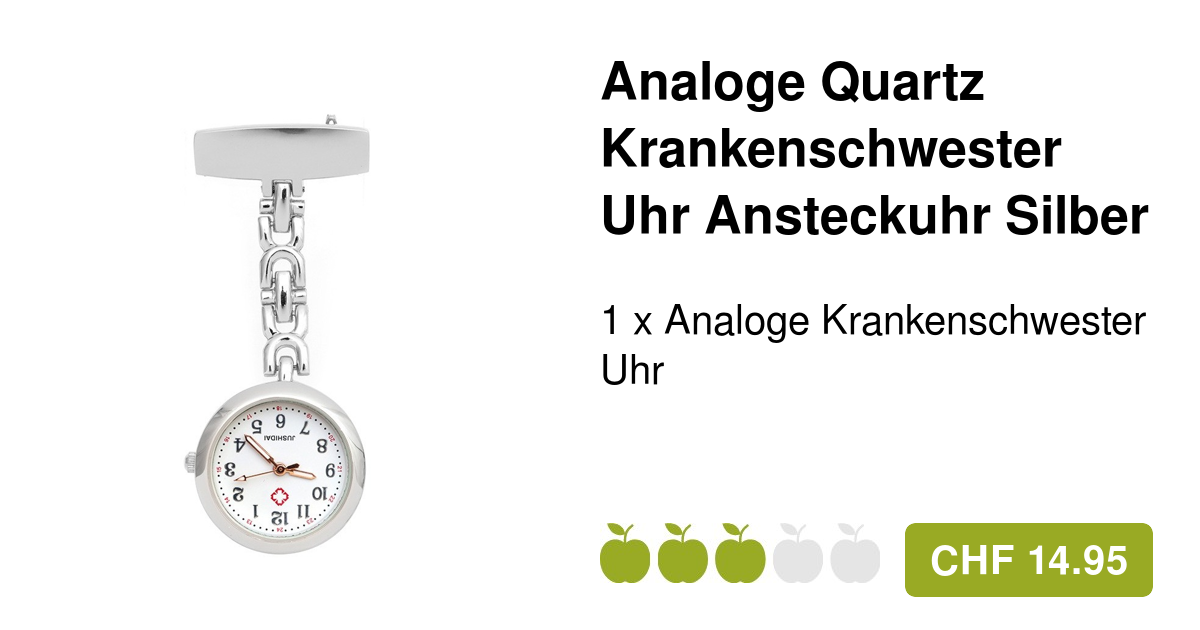 Praktisch und stylisch! Diese Schwesternuhren mit Clip sind der perfekte Begleiter für Krankenschwestern, Ärzte und medizinisches Personal. Das 2-teilige Set verfügt über ein präzises analoges Quarzwerk für genaue Zeitangaben und sparsamen Batterieverbrauch. Die Leuchtzeiger ermöglichen das Ablesen der Uhrzeit auch bei dunklen Lichtverhältnissen - ideal für Nachtschichten. Durch das Clip-Design lassen sich die Uhren einfach an der Uniform, am Kittel oder am Rucksack befestigen. Das dekorative 3D-Blumenmuster verleiht einen persönlichen Touch. Alltagswasserfest (nicht zum Schwimmen geeignet) und sofort einsatzbereit. Ein tolles Geschenk für alle im medizinischen Bereich!