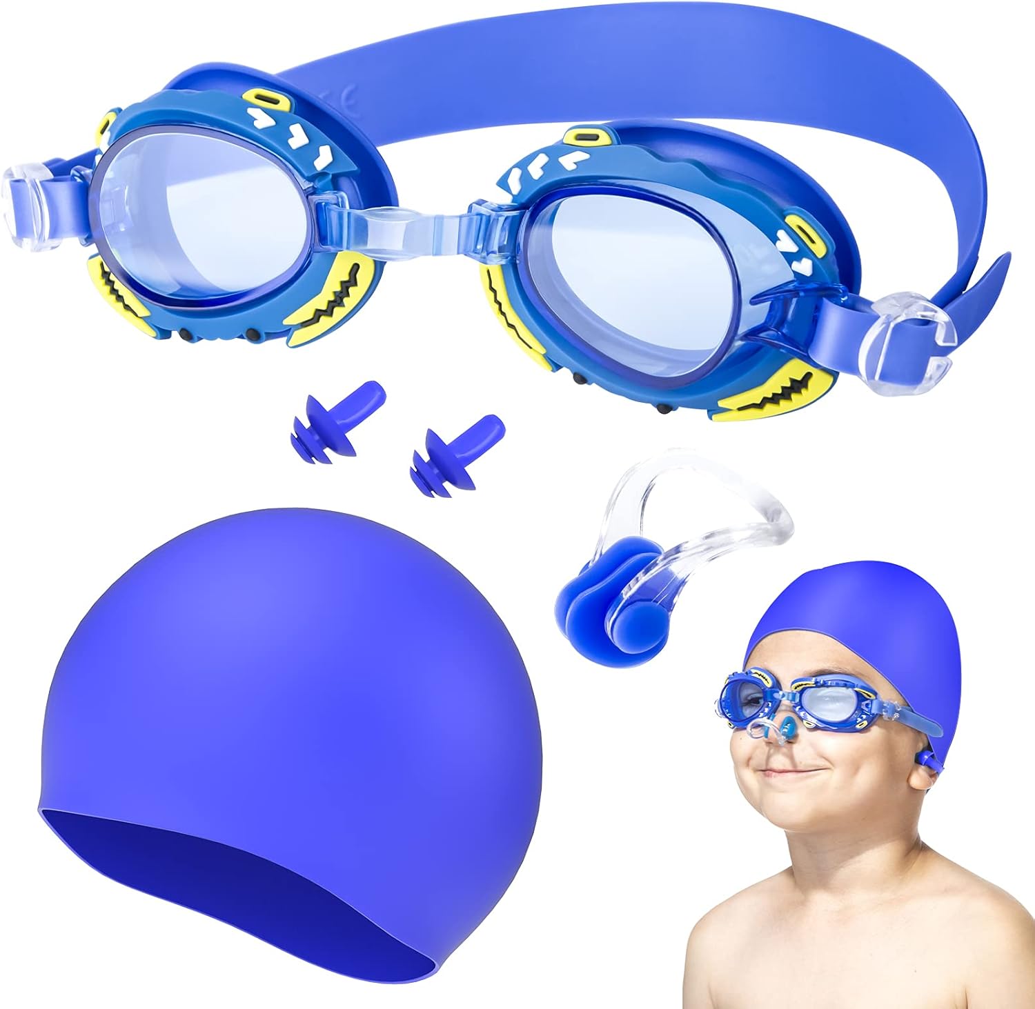 2x Kinder Schwimmbrillen Set - Mit Nasenclip & Ohrstöpseln, Anti-Beschlag