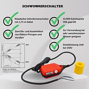 Dieser Schabus Mini-Schwimmerschalter ist der perfekte Partner für deine Wassermelder SHT 5000, 5001 und 5002! Aus robustem Kunststoff gefertigt, hält er ewig und ist absolut wartungsfrei. Mit 2,5 Meter Kabellänge kannst du ihn flexibel in Tanks, Zisternen oder Pumpensümpfen installieren. Der Reedkontakt schaltet ab etwa 4 cm Pegelhöhe um und aktiviert sofort deinen Wassermelder. Funktioniert mit allen Flüssigkeiten ab 0,7 g/cm³ Dichte - also Wasser, Heizöl, Diesel, Pflanzenöl und mehr. Als Wechsler kontakt musst du nichts umdrehen, er funktioniert einfach. Einfach montieren und du bist vor Wasserschäden geschützt. Perfekt für Haus, Garten oder Gewerbe - wo auch immer du Wasserstände überwachen musst. Zuverlässig, praktisch und made in Germany Qualität!