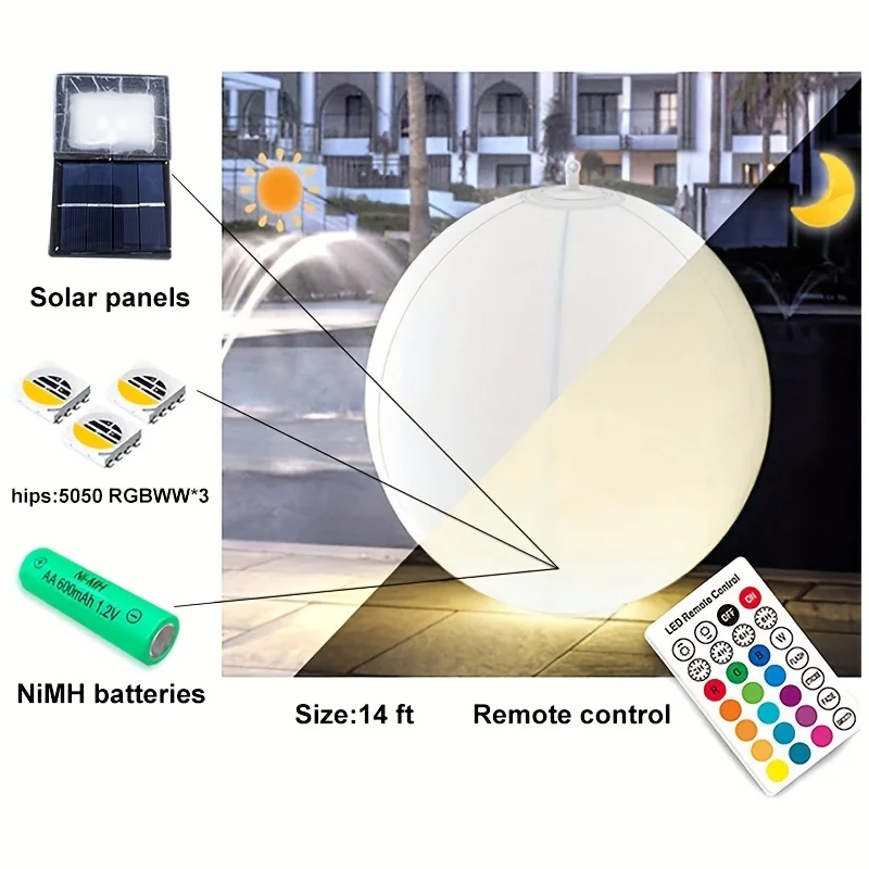 Verwandle deinen Pool in eine magische Lichtshow! Diese 2 solar-betriebenen Schwimmkugeln mit 34cm Durchmesser bringen Romantik und Stimmung in deinen Garten. Mit 16 verschiedenen Farben, 3 Beleuchtungsmodi und 3 Helligkeitsstufen kannst du die perfekte Atmosphäre schaffen. Die praktische Fernbedienung macht die Bedienung super einfach. Einfach mit der beiliegenden Luftpumpe aufblasen, 8-10 Stunden in die Sonne legen und schon leuchten sie bis zu 16 Stunden! Mit IP68 Wasserschutz sind sie perfekt für Pool, Teich oder Gartendeko geeignet. Aus robustem PVC-Material, weich und langlebig. Perfekt für Partys, Hochzeiten oder einfach für gemütliche Sommerabende. Schaffen eine traumhafte Atmosphäre - wie funkelnde Sterne auf dem Wasser!
