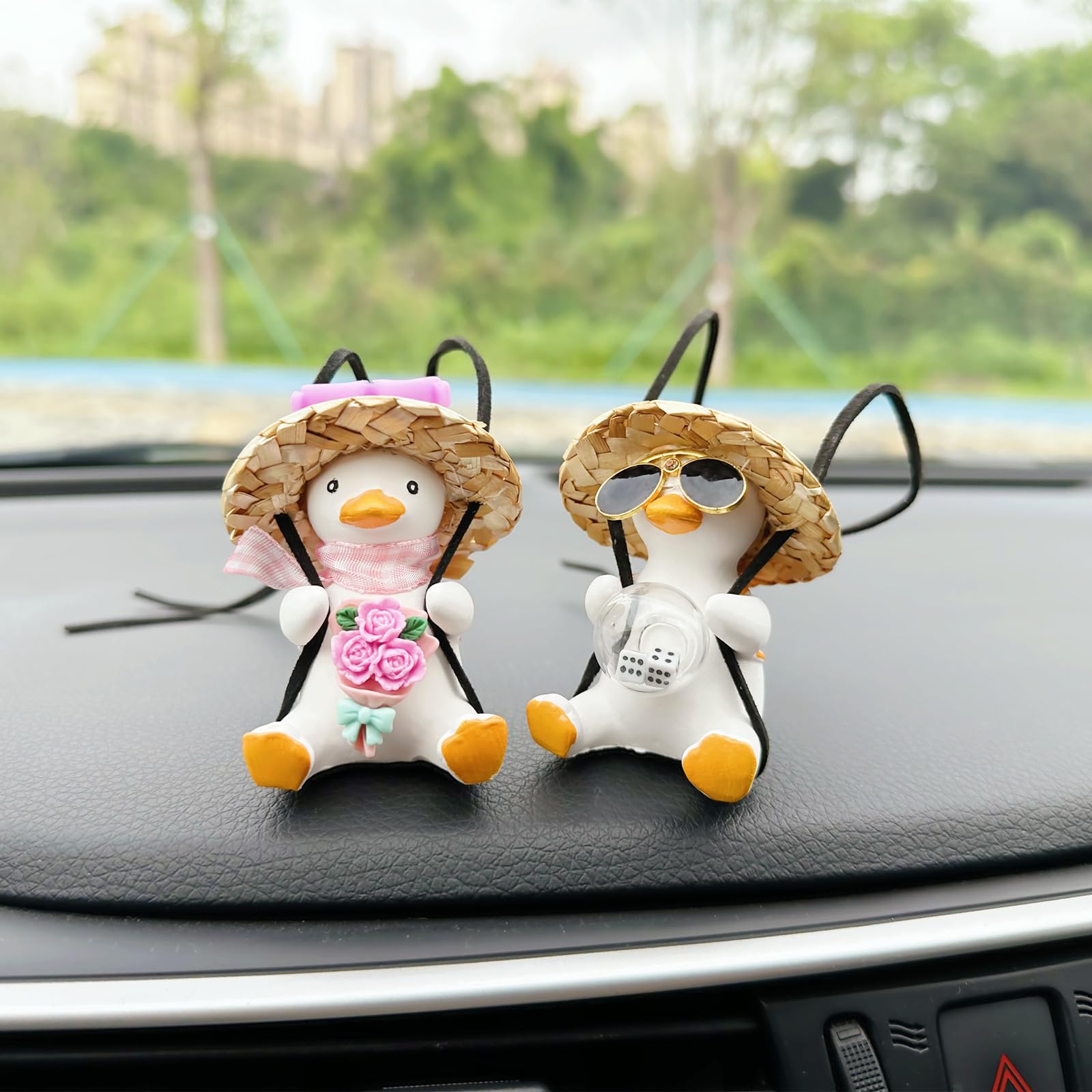 Bring mehr Spaß in dein Auto! Diese zwei süßen Enten sind der Hit für deinen Rückspiegel. Eine trägt ne coole lila Brille und hält ein Eis, die andere hat nen Strohhut und Sonnenbrille - einfach urig! Aus Umweltschutzgips gemacht, Farben halten gut und es müffelt nicht. Größe ca. 6cm hoch, 4cm breit - also nicht zu groß. Sobald du fährst oder Wind geht, schaukeln die Enten lustig hin und her. Macht nicht nur Spaß, sondern hilft sogar gegen monotone Fahrten. Übrigens: Nicht nur fürs Auto super, sondern auch für Büro, Zimmer, Rucksack oder Garten. Perfektes Geschenk für Geburtstage, Valentinstag oder einfach so. Achtung: Falls was kaputt ankommt, einfach melden - wir regeln das!