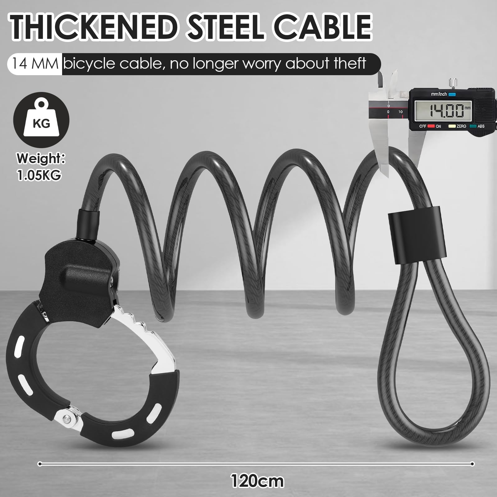 Dein E-Scooter oder Fahrrad ist dir wichtig? Dann schütz es mit diesem robusten Kabelschloss! Mit 14mm Stärke ist es dicker als viele andere Schlösser - das schreckt Diebe richtig ab. Das 120cm lange Kabel gibt dir genug Spielraum, um dein Gefährt sicher an Laternen oder Fahrradständern festzumachen. Die Silikonummantelung schützt vor Kratzern und ist wasserdicht. Der Kupferkern rostet nicht, auch wenn's mal regnet. Einfach den Schlüssel drehen - schon ist dein Scooter sicher. Passt übrigens auch super für Motorräder, Kinderwagen oder Zäune. Mit diesem Schloss kannst du beruhigt einkaufen gehen oder dein Rad über Nacht draußen stehen lassen. Einfach, sicher und zuverlässig!