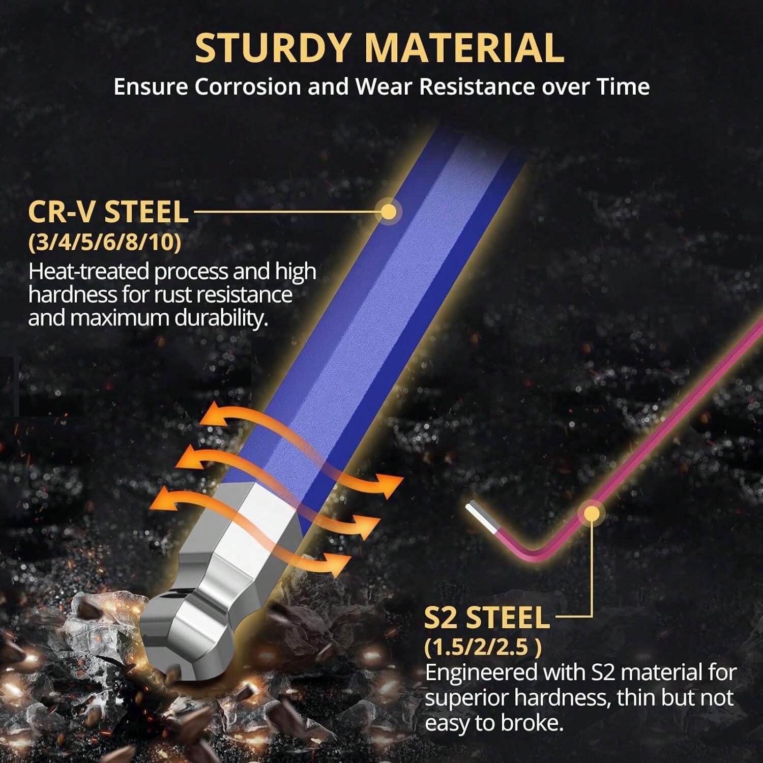 KEWAYO T-Griff Sechskantschlüssel Set - 3-teilig, 4-6mm, Mit Kugelkopf & Aufbewahrungsbox