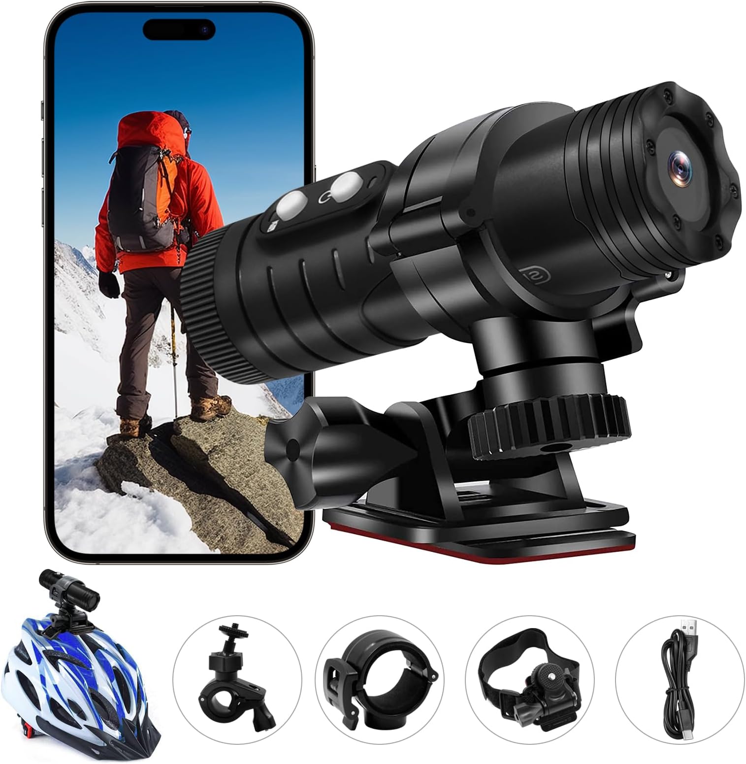 SecuraLen Mini Action Cam WiFi 1080P - Wasserdichte Helmkamera Mit 4h Akku