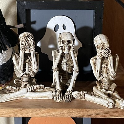 Halloween Schädel Figuren Set | See No Evil Skelette | Für Kamin & Regal | Grusel-Deko Indoor