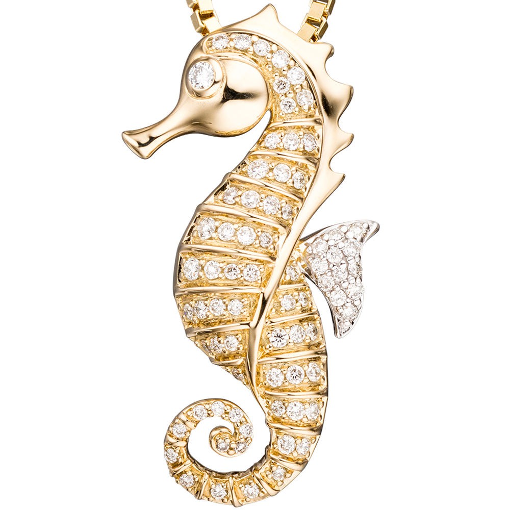 Seepferdchen Anhänger 14 Karat Gelbgold - 30mm Goldanhänger Ohne Kette