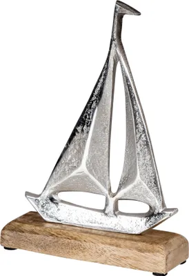 Hol dir Urlaubsfeeling nach Hause mit dieser wunderschönen Segelboot-Figur! Das 19cm hohe Kunstwerk aus Metall und Holz in Silber und Braun bringt maritimes Flair in deine vier Wände. Perfekt fürs Wohnzimmer, Badezimmer, Wintergarten oder Ferienhaus - aber auch in Hotels, Restaurants oder Reisebüros macht sich diese Deko super. Das detailreiche Segelschiff auf dem soliden Holzsockel ist ein echter Hingucker der Sommer, Sonne und Meer verspricht. Ein ideales Geschenk für Geburtstage, Weihnachten, zur Einweihung oder einfach als kleine Aufmerksamkeit für Menschen die du magst. Vom kleinen Logbuch-Verlag aus Bayern mit Liebe verpackt versendet. Schaff dir deine persönliche Urlaubsoase - diese maritime Deko macht es möglich!