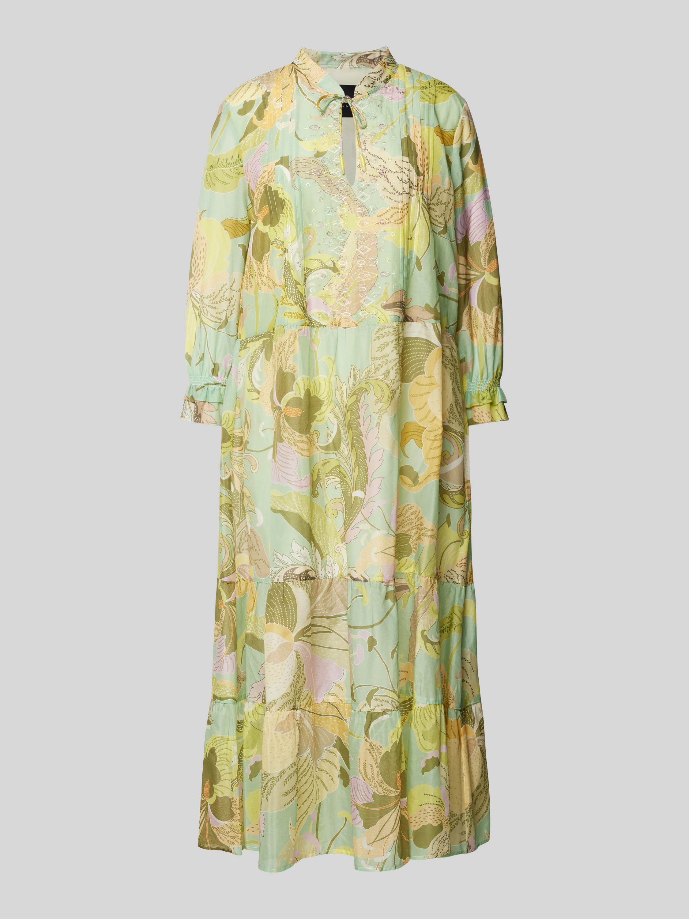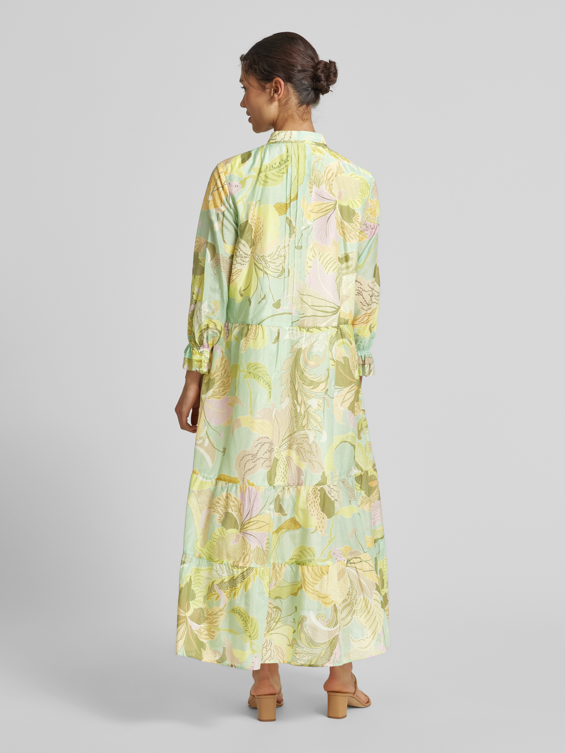 KULIA Damen Sari Indisch - Baumwoll-Seide Mix Mit Digitaldruck Grün-pfirsichfarben