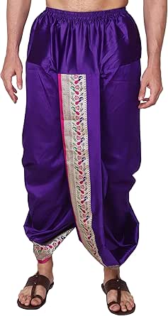 Tradition trifft Komfort! Dieser gebrauchsfertige Dhoti aus feister Seide von Rameshwaram Fabrics macht das Anziehen zum Kinderspiel - keine komplizierten Falten oder Drapierungen nötig. Die Einheitsgröße passt den meisten Männern und wird mit einem passenden Dupatta (Umhang) geliefert. Perfekt für traditionelle Anlässe wie Pujas, Feste, Hochzeiten oder Rituale. Aber auch als stylische Yogahose oder für besondere Events geeignet. Die luxuriöse Seide fühlt sich wunderbar auf der Haut an und verleiht dir eine elegante Erscheinung. Ein tolles Geschenk für jeden Anlass - bringe indische Tradition in deinen Kleiderschrank!