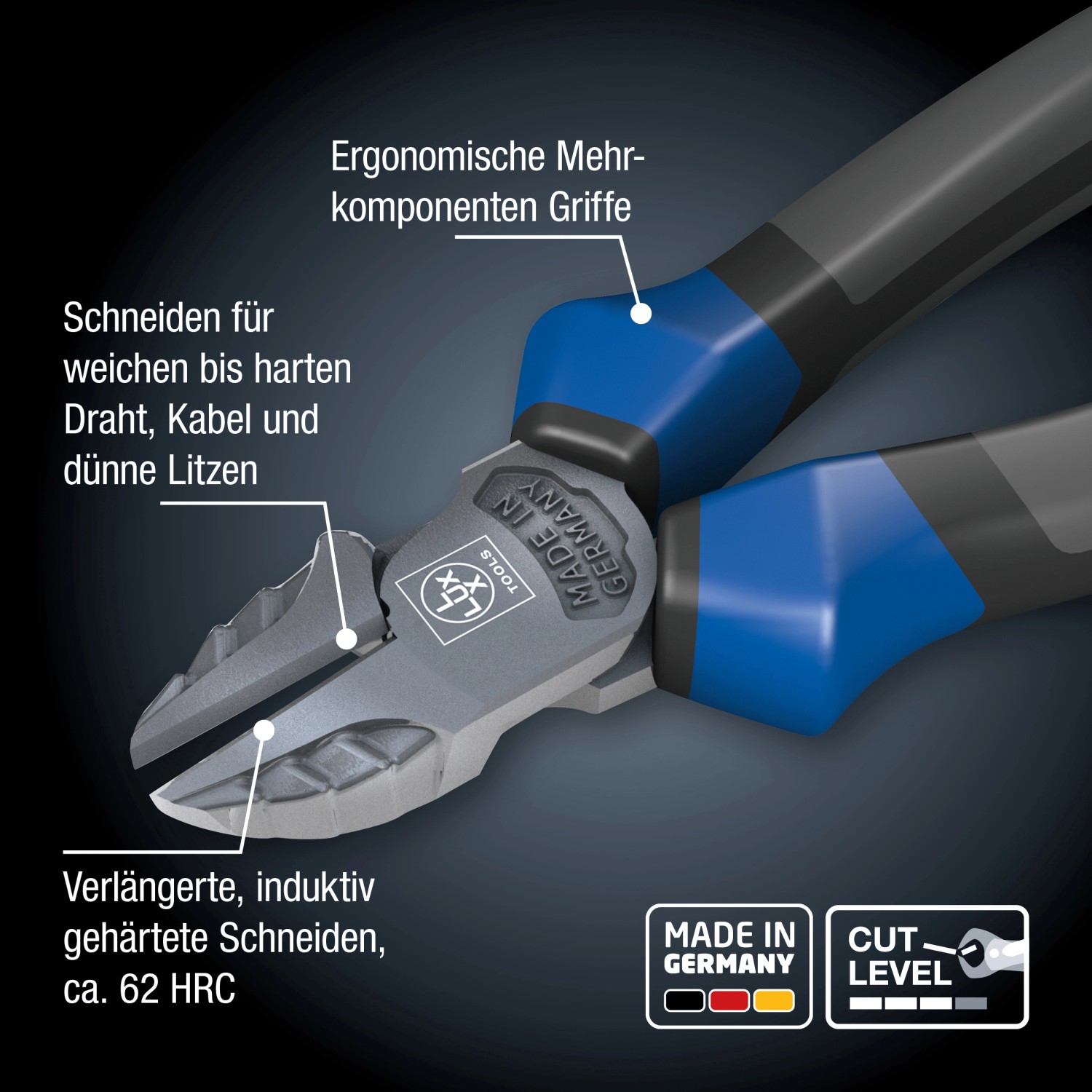 Deutscher Qualitäts-Seitenschneider vom Feinsten! Der VBW Seitenschneider aus der Serie 587-6 ist ein echtes Arbeitstier für jede Werkstatt. Mit 160mm Länge liegt er perfekt in der Hand und gibt dir die nötige Hebelkraft. Aus robustem Elektrostahl gefertigt und poliert für langanhaltenden Glanz. Die induktiv gehärteten Präzisionsschneiden (ca. 64 HRc) machen selbst vor hartem Pianodraht nicht halt. Der Kunststoffüberzug sorgt für sicheren Halt und verhindert das Abrutschen. Hergestellt in Deutschland - das garantiert höchste Qualität und Langlebigkeit. Egal ob du in der Elektroinstallation, Modellbau oder allgemeinen Handwerksarbeiten unterwegs bist - dieser Seitenschneider ist dein zuverlässiger Begleiter. Einfach unkaputtbar und immer einsatzbereit!