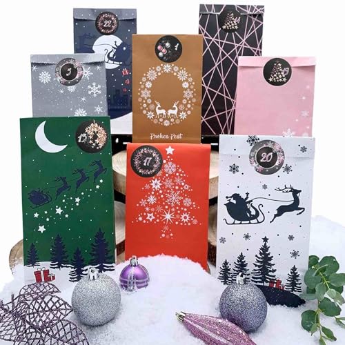 Endlosschenken Adventskalender Zum Selber Befüllen - 24 Tüten Mit Aufklebern