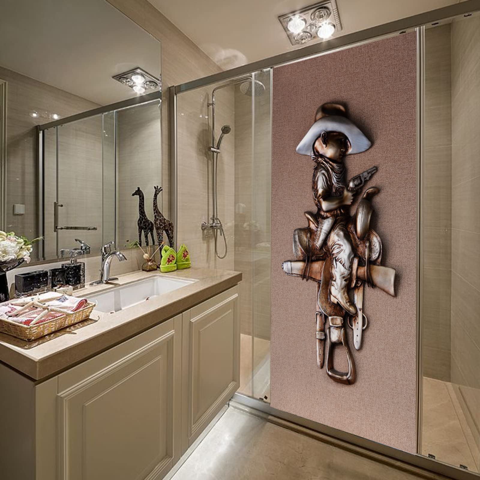 Willkommen im Wilden Westen! Dieser coole 3D-Türaufkleber im Western-Cowboy-Design verwandelt jede langweilige Tür in einen echten Eyecatcher. Die selbstklebende Folie ist aus robustem, wasserfestem PVC und lässt sich ganz ohne Kleber anbringen. Einfach die Schutzfolie abziehen und Stück für Stück auf der Tür anbringen.