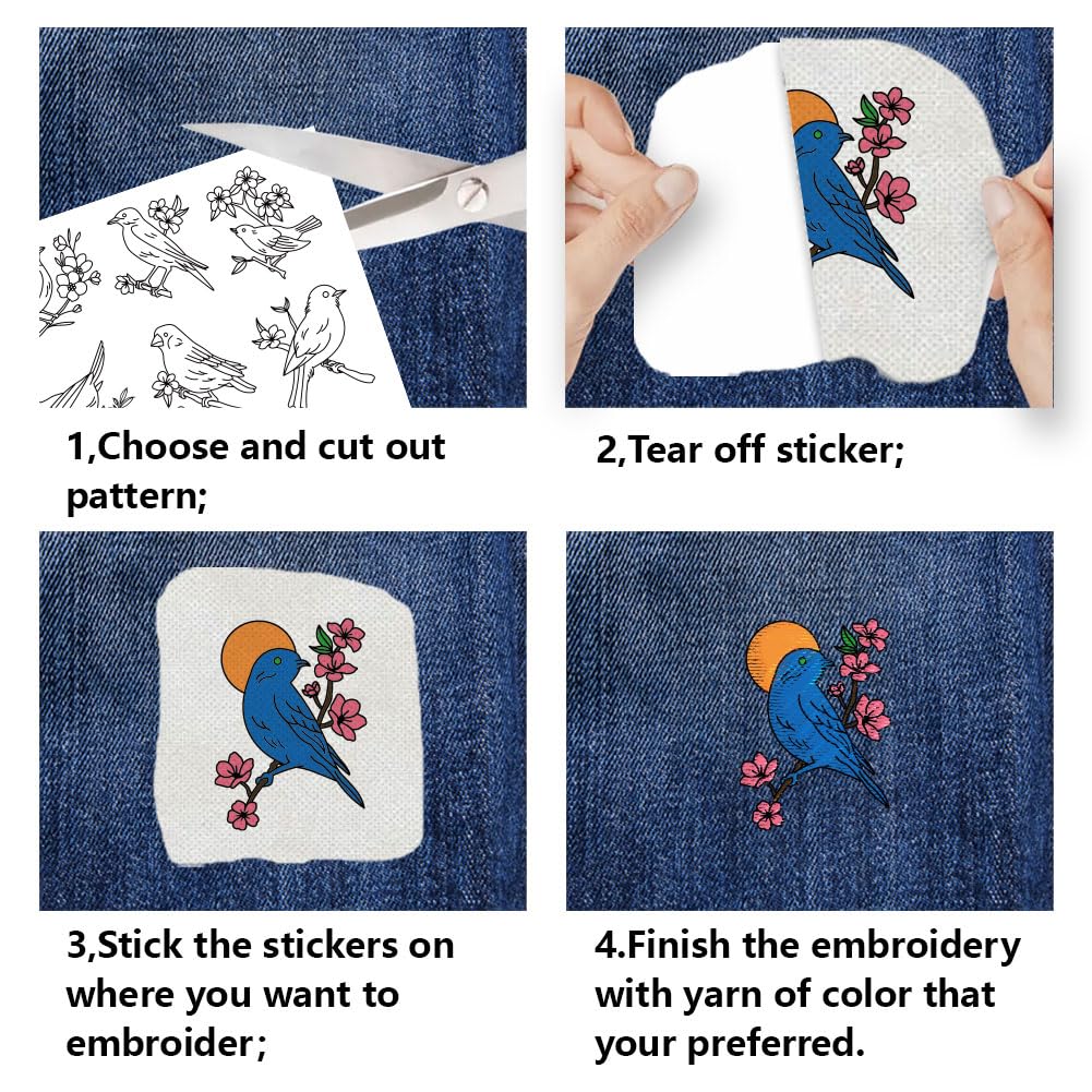 Wasserlösliche Stickübertragungen - Selbstklebend Für Handstickerei Vögel