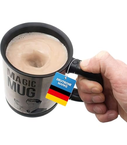 Nie wieder Kaffee umrühren! Diese geniale Rührkaffeetasse erledigt das Rühren komplett automatisch. Einfach Knopf drücken und der magnetische Propeller mischt deinen Kaffee, Tee oder Kakao perfekt durch. Mit 380ml Fassungsvermögen - ideal für unterwegs. Läuft mit 2 AAA-Batterien (nicht im Lieferumfang), kein Stromanschluss nötig. Aus ABS, PP und Edelstahl 304 - spülmaschinengeeignet. Besonders praktisch: Der Rotor ist nicht außermittig, kein Verschütten! Einfach zu reinigen, kann auch als normale Tasse verwendet werden. Perfekt für Büro, Reise, Auto oder Zuhause. In weiß oder braun erhältlich. Endlich cremiger, gut durchmischter Kaffee ohne Aufwand!