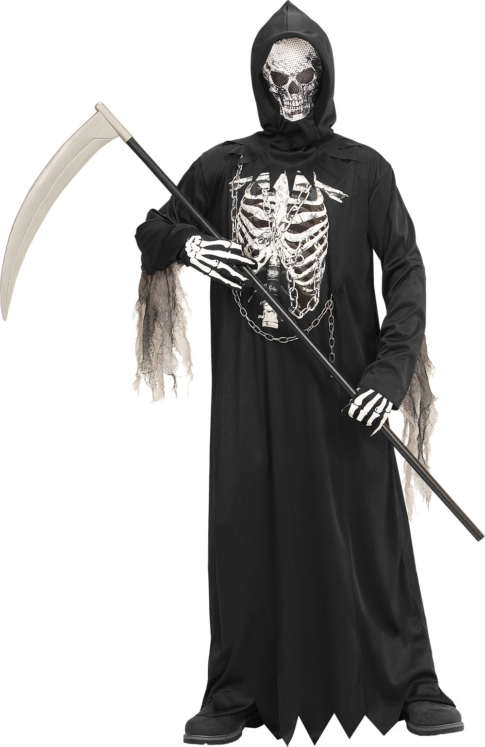 Im Set enthalten: Kostüm, Sense, Maske und Handschuhe. Dein Kind wird der Star jeder Party - aber Vorsicht, nicht zu gruselig!