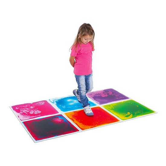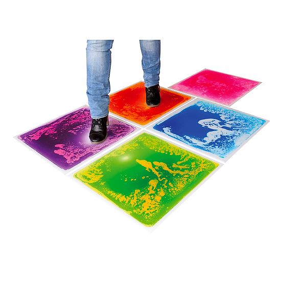 Diese bunten Bodenfliesen bringen Bewegung in jedes Zimmer! Wenn dein Kind darauf tritt, springt oder tanzt, bewegen sich die coolen Flüssigkeits-Farben wie in einer Lavalampe. Mega fesselnd und perfekt gegen Langeweile! Jede der 4 Fliesen ist 30x30cm groß und hat eine rutschfeste Unterseite - absolut sicher auch für wilde Spielstunden. Keine Installation nötig - einfach auf den Boden legen und los geht's! Die speziellen Polymere sind abriebfest und ungiftig, dazu noch recyclebar. Selbst Erwachsene können darauf stehen - die Fliesen sind richtig stabil. Toll fürs Kinderzimmer, Kindergarten oder Therapieraum. Fördern die Konzentration und machen einfach riesig Spaß! Einfach mit feuchtem Tuch abwischbar. Deine Kids werden stundenlang beschäftigt sein - und lernen dabei ganz nebenbei was über Farben und Bewegung. Ein echter Hingucker und Spielspaß in einem!