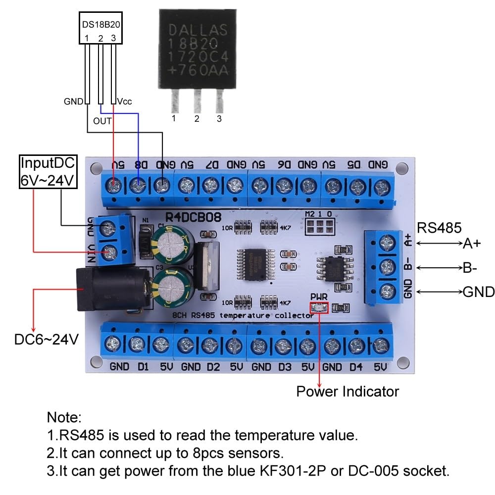 Moin Techniker! Dieses 8-Kanal Sensormodul R4DCB08 ist perfekt für deine Temperaturmess-Projekte! Mit RS485 Schnittstelle und für 6-24V Betrieb.