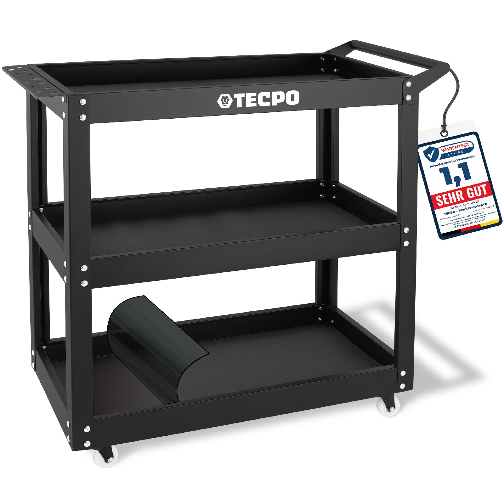 Alter, dieser Servierwagen ist ein absoluter Alleskönner! Hält satte 250kg aus - da kannst du wirklich alles draufpacken. Aus stabilem PP-Material, rostfrei und kratzfest. Maße: 84,5x41,5x85cm - genug Platz für Werkzeuge, Teile oder was auch immer. Mit 2 Aufhänghaken für Schläuche oder Werkzeug - super praktisch! Die Räder mit Bremse - zwei lenkbar für easy Manövrieren. Nur 13,5kg Eigengewicht - leicht zu bewegen trotz der Stabilität. Perfekt für Werkstatt, Lager, Garage oder sogar im Garten. Spart echt Zeit beim Transport - alles auf einmal bewegen! Einfache Montage in 3 Schritten - keine komplizierte Anleitung nötig. Ob schwere Maschinenteile oder Gartengeräte - dieser Wagen macht keinen Rückzieher. Auch im Büro super für Akten oder Drucker. Einfach ein unverzichtbarer Helfer für jeden, der viel zu transportieren hat!