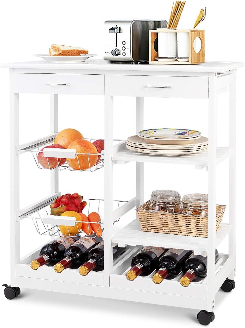 POPSPARK Servierwagen Mit 3 Regalen - Küchenwagen Im Landhausstil 61x36x75cm