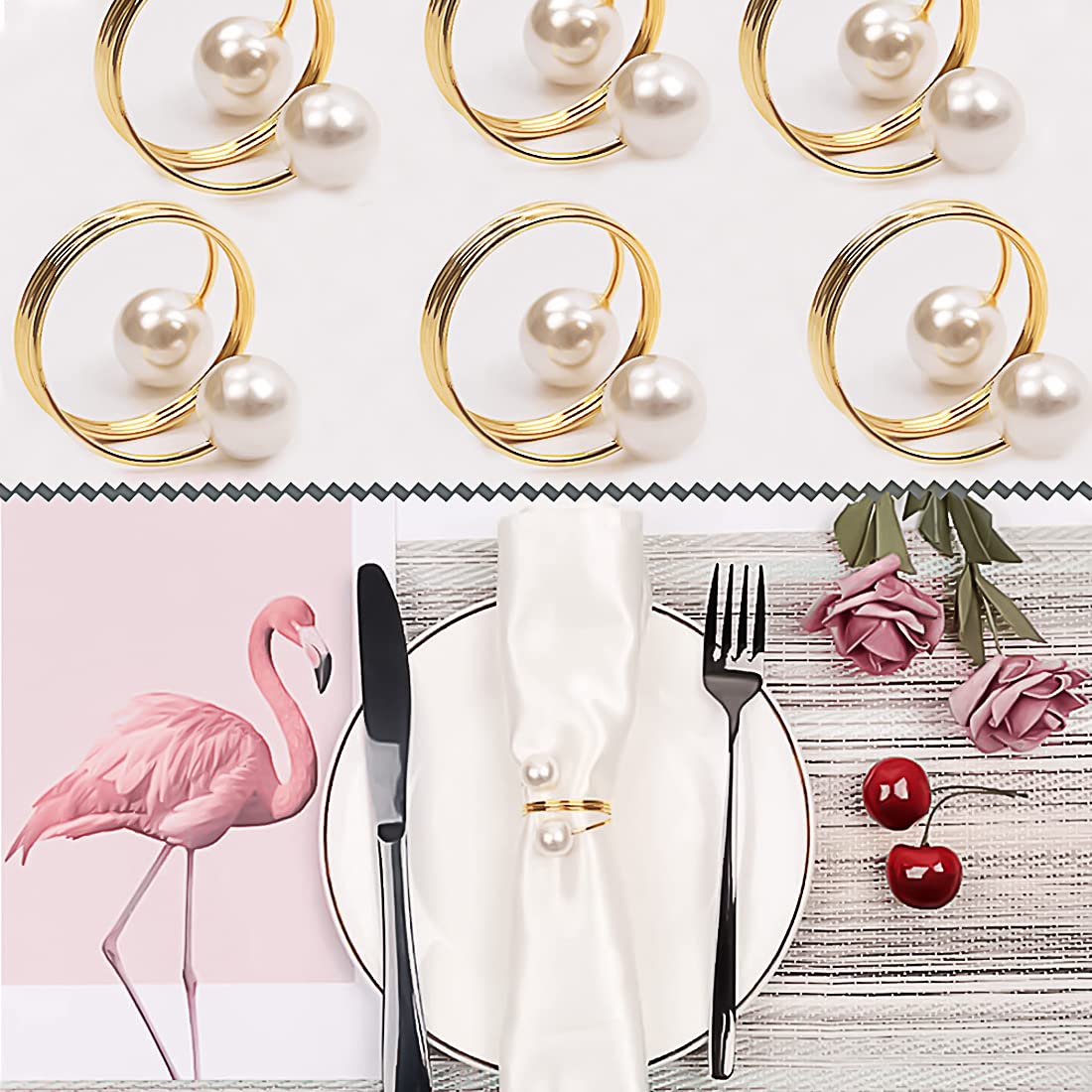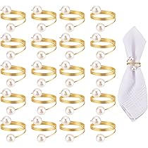 20 Stück Goldene Serviettenringe Mit Perlen - Elastische Tischdeko Für Hochzeit & Feiern
