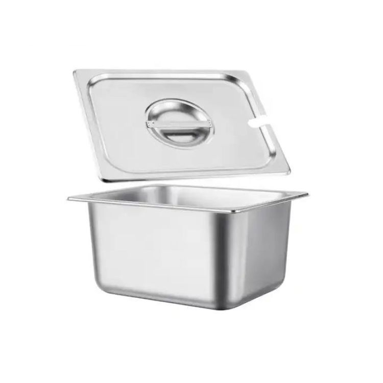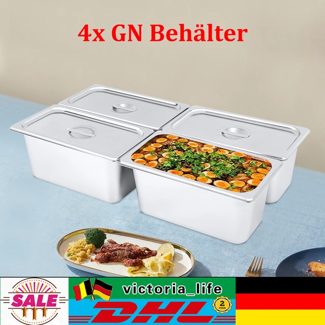 Für alle, die gerne kochen und wert auf Ordnung in der Küche legen: Dieses Gastronorm-Pfannen Set von LOLYSIC ist ein echter Game-Changer! Die vier Edelstahl-Behälter im 1/3 Format sind genau das, was du für die professionelle Küchenorganisation brauchst.👨🍳\n\nJede Pfanne misst 32,5 x 17,5 x 6,5 cm und ist damit perfekt für die Aufbewahrung von Vorräten, das Zubereiten von Speisen oder das Anrichten bei Feiern. Das Beste: Die Behälter sind absolut vielseitig einsetzbar! Du kannst sie einfrieren, im Ofen verwenden, auf dem Herd erhitzen oder im Dampfgarer nutzen. Egal ob warm oder kalt - diese Pfannen machen alles mit.\n\nAus robustem Edelstahl gefertigt, sind sie nicht nur rostfrei und dellenbeständig, sondern auch super leicht zu reinigen. Einfach in die Spülmaschine stellen und fertig! Die mitgelieferten Deckel schützen deine Speisen vor Staub und halten sie länger frisch. Und die beiden Edelstahl-Küchenzangen sind praktisches Bonus-Zubehör für das sichere Greifen von Lebensmitteln.\n\nDurch den erhöhten Rand und die abgerundeten Ecken lassen sich die Pfannen sicher stapeln und transportieren. Perfekt also für Catering, Familienfeiern oder einfach für mehr Ordnung im eigenen Kühlschrank. Ob für die Profiküche oder den ambitionierten Hobbykoch - dieses Set macht in jeder Küche eine gute Figur!🔥