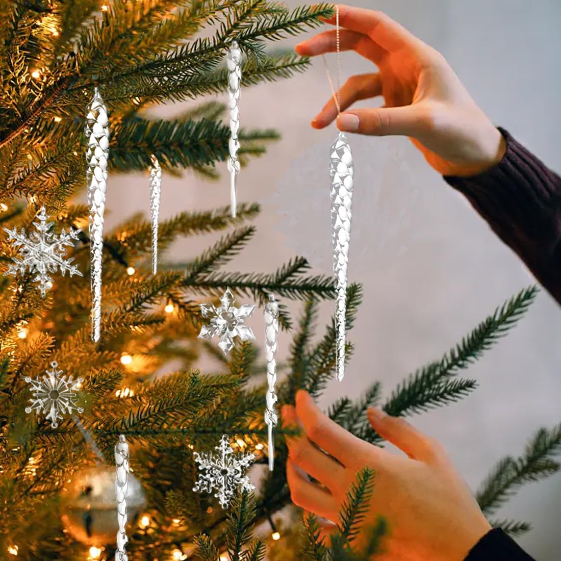 Eiszapfen Christbaumschmuck Set - 10 Acryl Anhänger | Weihnachtsbaum Deko Kristall Eiszapfen