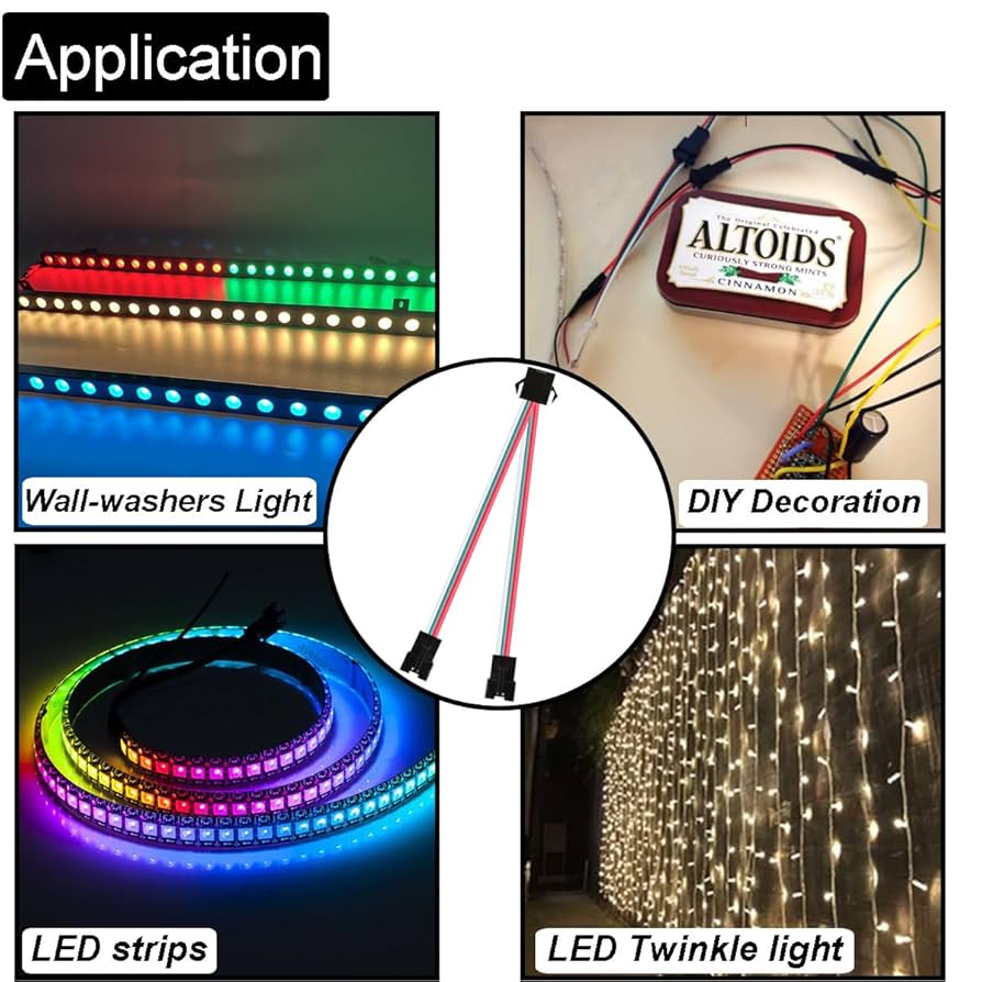 Perfekte Verbindungen für deine LED-Projekte! Dieses 10-teilige Set mit JST SM2.54 Steckern macht das Verkabeln von LED-Streifen super einfach. Mit dem 1-auf-2 Splitter-Design kannst du mehrere Geräte parallel anschließen - ideal für WS2811 und WS2812B LED-Streifen. Die 3-Pin-Stecker mit 15 cm Kabellänge sind aus hochwertigem PVC mit verzinnten Kupferleitungen, das bedeutet beste Leitfähigkeit und Flammhemmung. Kein Löten nötig! Einfach reinstecken und fertig. Perfekt für LED-Wandfluter, Gürtellichter, Vorhanglichter oder DIY-Elektronikprojekte. Das Set enthält 10x 1-Weiblich-auf-2-Weiblich Adapter, plus 2 männliche und 2 weibliche JST Stecker als Extra. Kompaktes Design, leichtes Gewicht - ideal auch für beengte Platzverhältnisse. So machst du deine Beleuchtungsinstallation zum Kinderspiel!